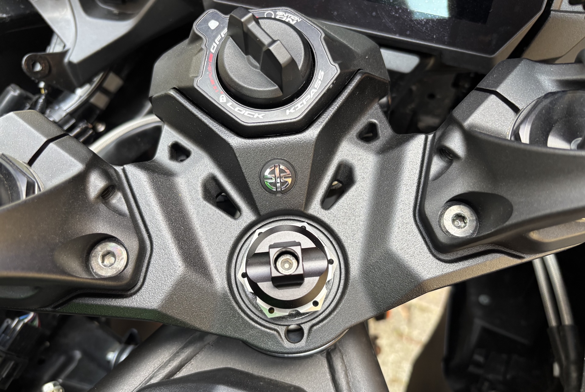The Chigee Fork Stem Mount comes with six adapter plugs covering fork stem holes from 12 mm to 29 mm. Selecting the right fit was simple; I secured it to the stem and paired it with the Quick-Release cradle. This central position optimizes viewing without cluttering the cockpit.
