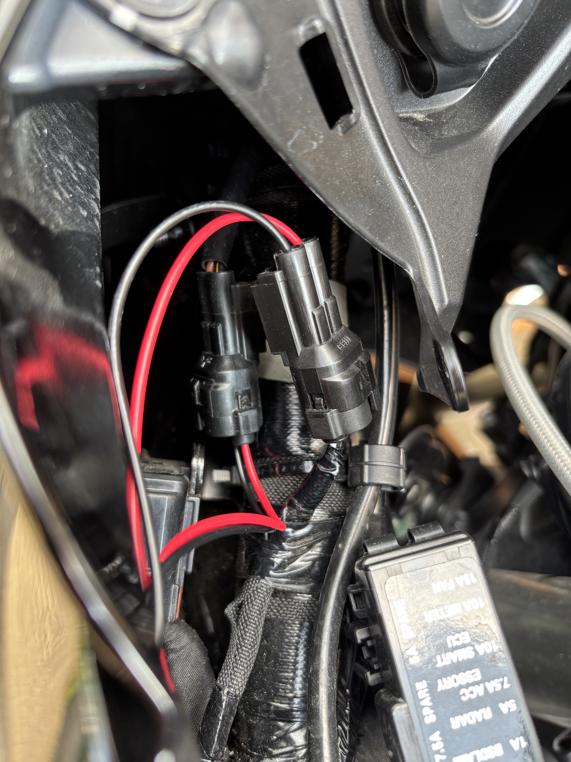 Three connectors grace the AIO-6 Max: two orange for cameras (skipped here) and one red handling 12V power, ground, and ignition-switched ACC. I wired power and ground straight to the battery, tapping ACC via a non-invasive T-connector into the lighter socket for switched operation. This preserved all factory wiring while ensuring reliable startups.
