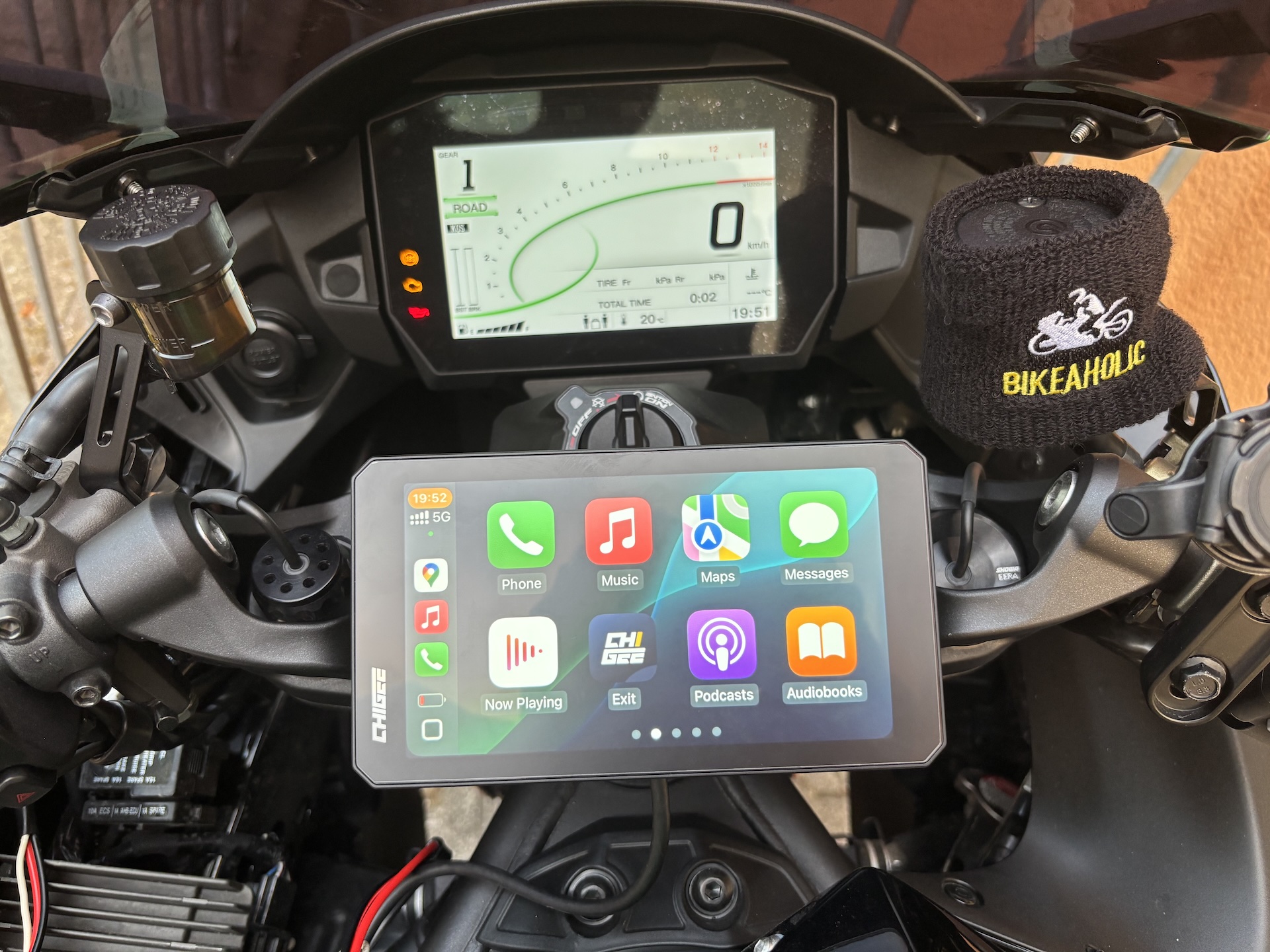 Mixed experiences with the Garmin zūmo XT2 on my Kawasaki H2 SX SE left me seeking better options, while smartphone apps like Calimoto and Google Maps delivered much better results. Quad Lock mounts kept my phone viable as a backup, but for enhanced visibility and security on long rides, a dedicated smart display became essential. Extensive research led straight to the Chigee AIO-6 Max, perfectly suited for Apple CarPlay and Android Auto on motorcycles.