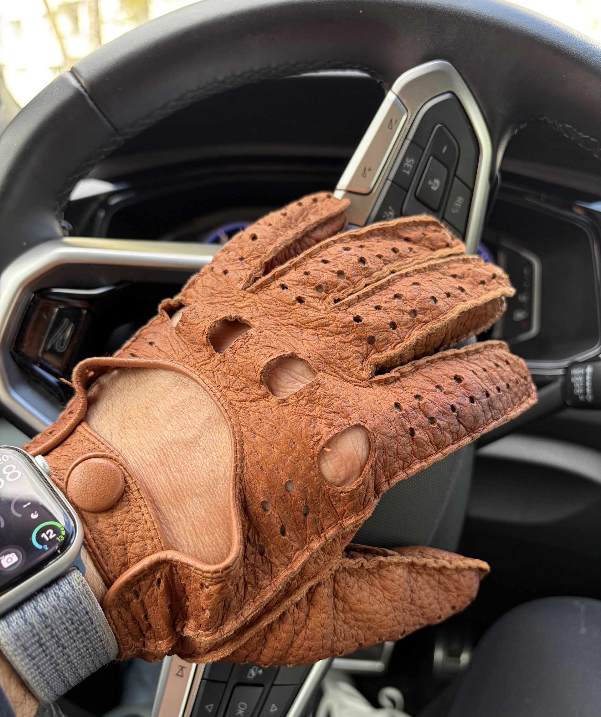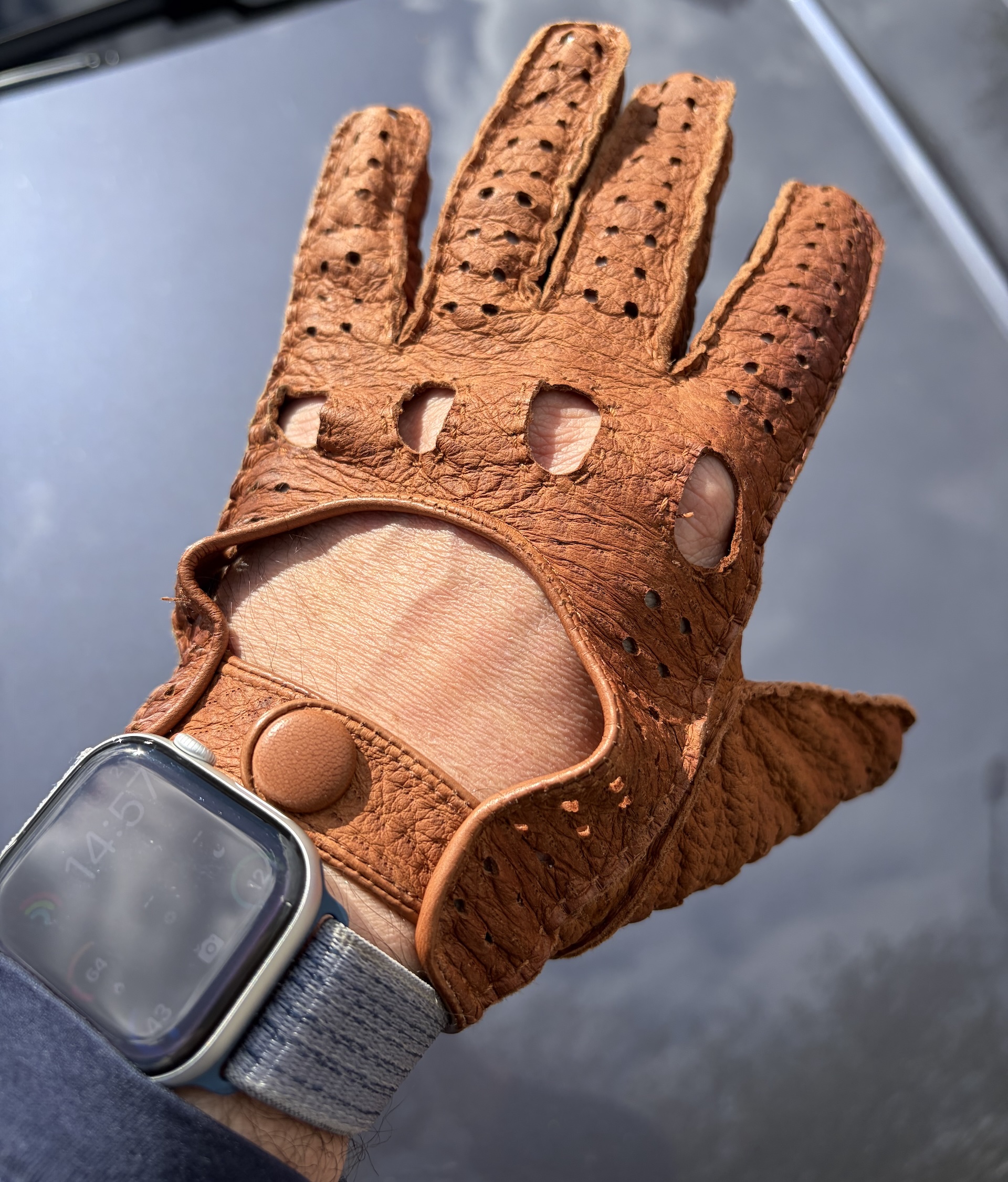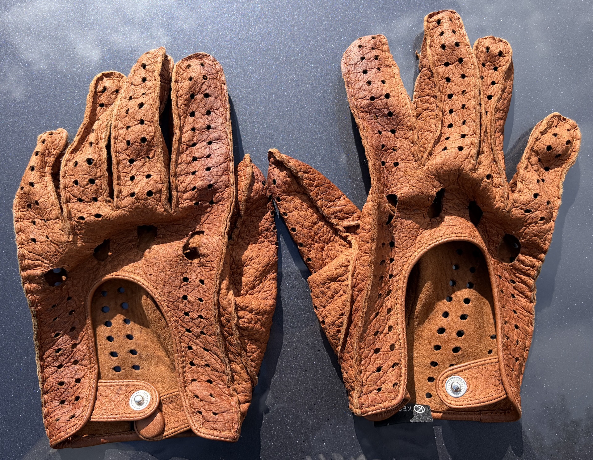 Recently, I bought my first convertible, and the idea returned. I wanted perforated leather gloves with a retro look, so after some online research, I narrowed it down to the Kessler Henry model.