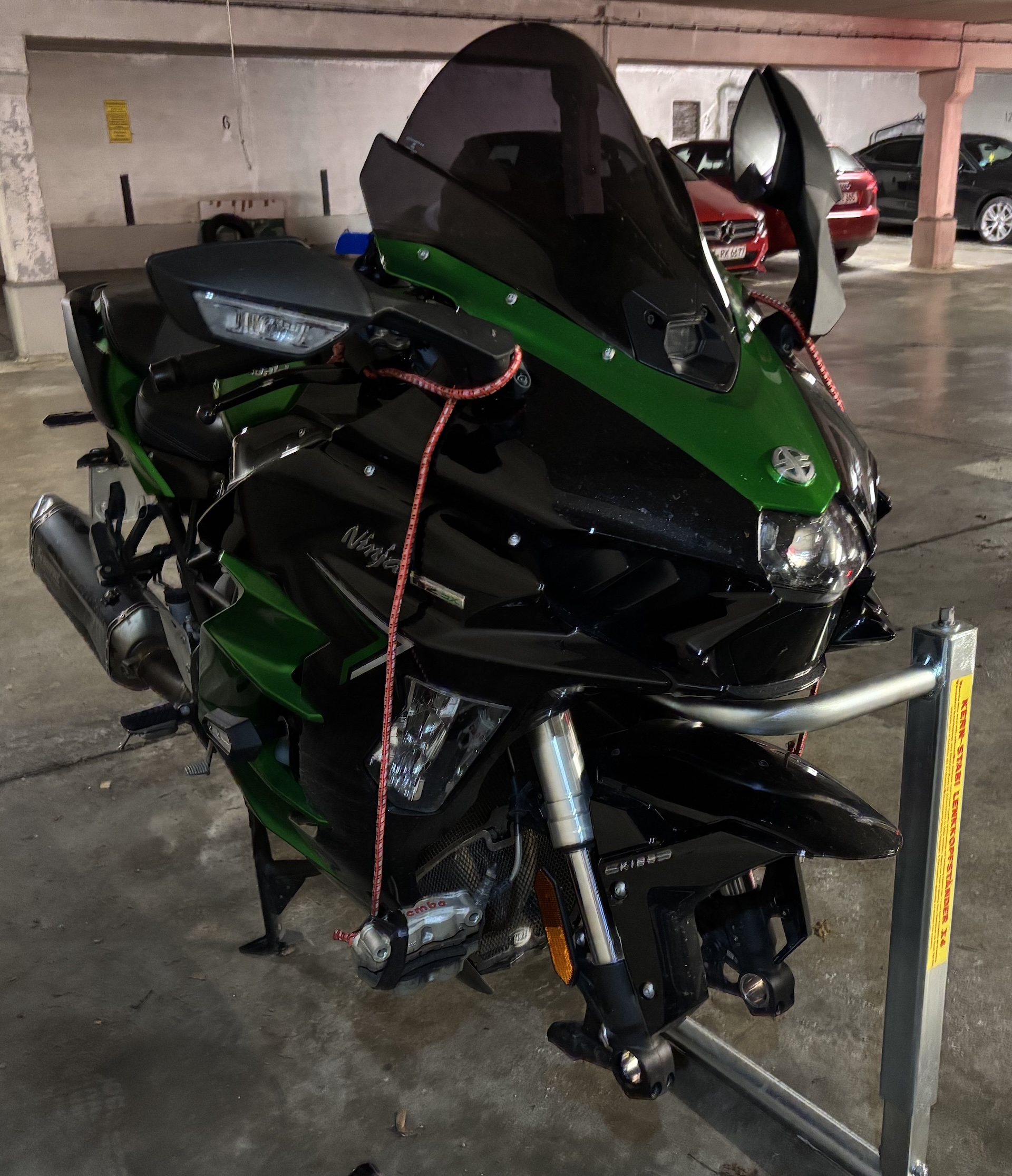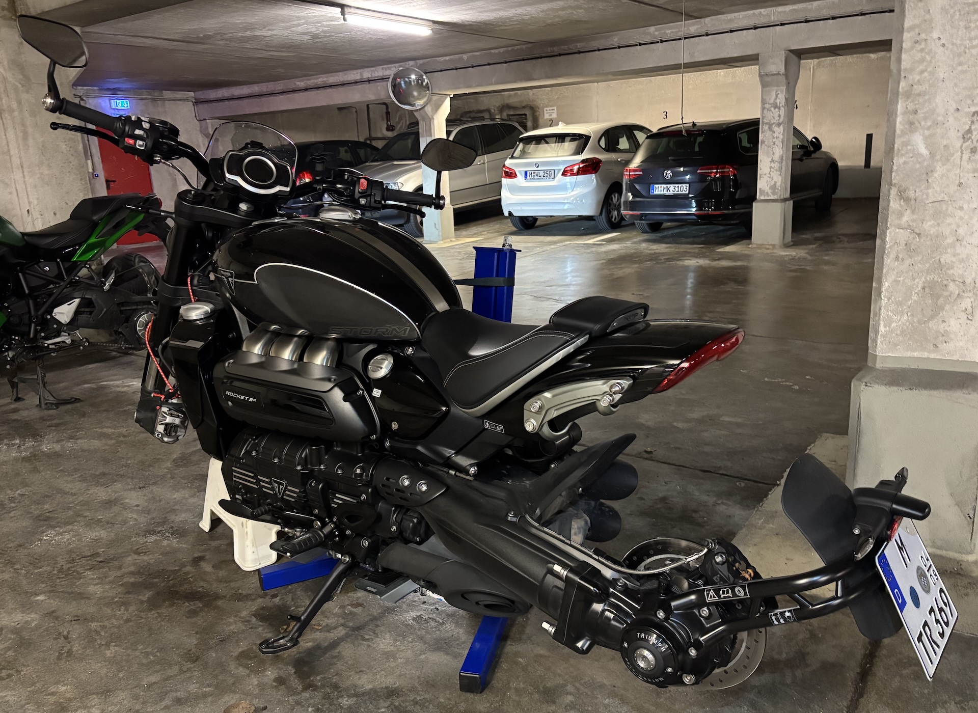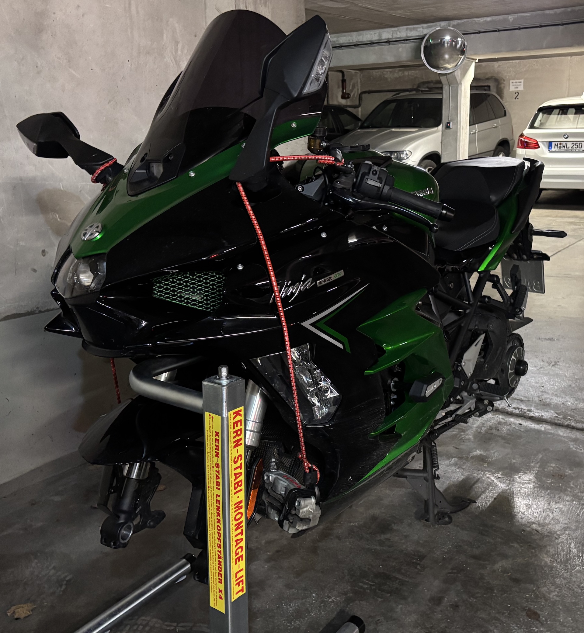 Although I own two motorcycles, by the end of May this year the tires on both were worn out and needed replacement. As I mentioned before, for lifting the Triumph Rocket 3 Storm R I had previously acquired the EazyRizer Big Blue lift, while for the Kawasaki H2 SX SE the Kern-Stabi Spindle Stand X4 2049 front stand was sufficient. I won’t go into the procedure itself, you can find plenty of detailed videos on YouTube and other websites, but I wanted to share a few photos showing how the process looked in my case. The conclusion is straightforward: both lifts performed their intended functions effectively, allowing me to remove the wheels without much effort, take them to a tire shop for replacement and balancing, and then reinstall them on the motorcycles.