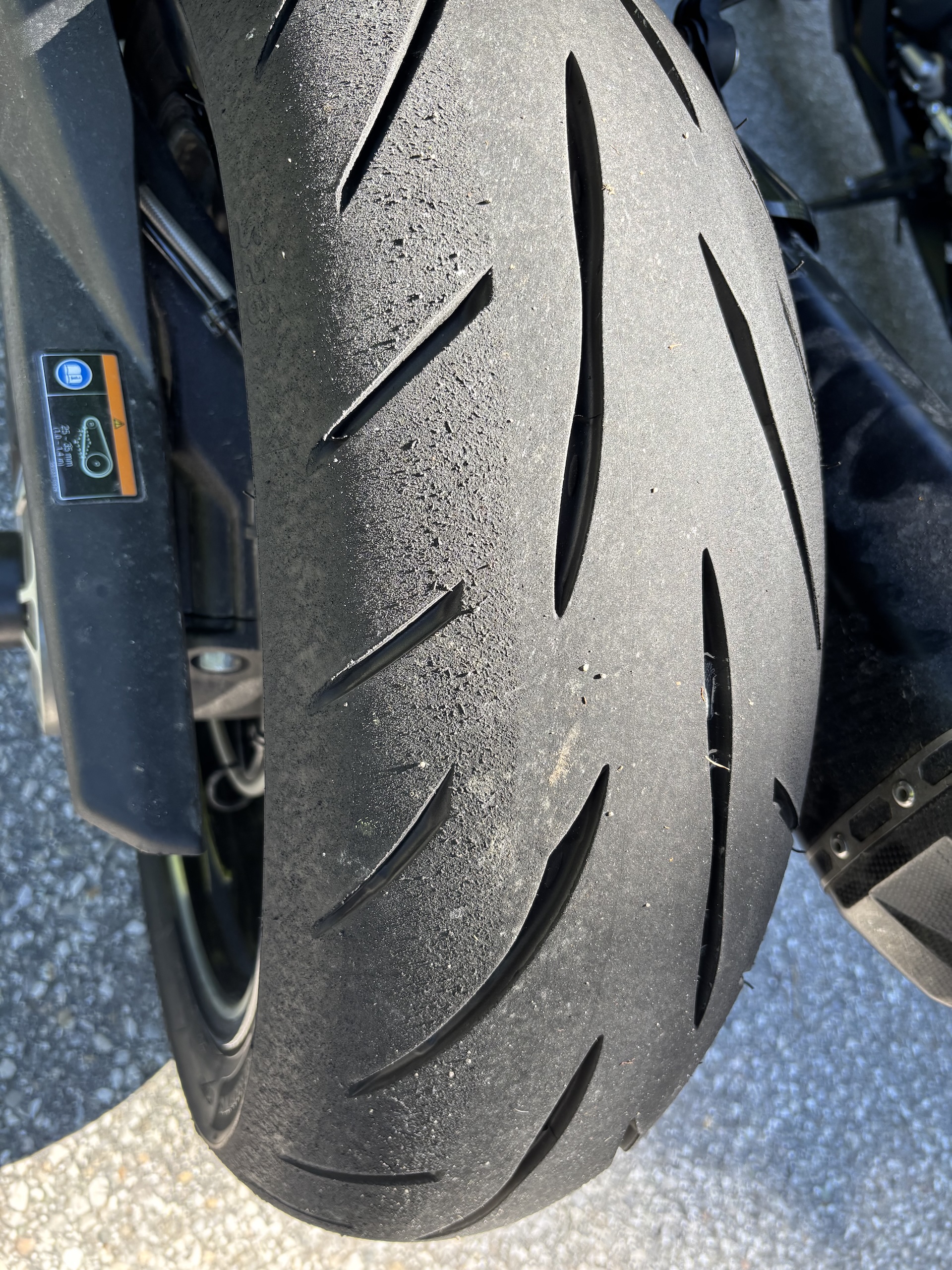 For those interested, I fitted Metzeler Cruisetec tires on the Triumph Rocket 3 Storm R, and Bridgestone Battlax Hypersport S23 tires on the Kawasaki H2 SX SE. I am satisfied with both tire choices, particularly with the performance of the S23s.
