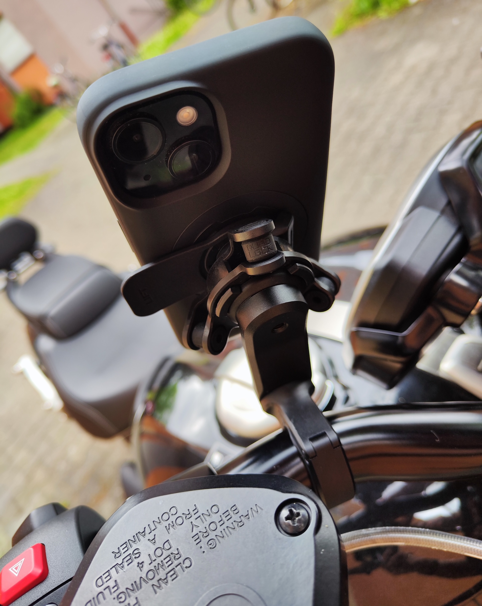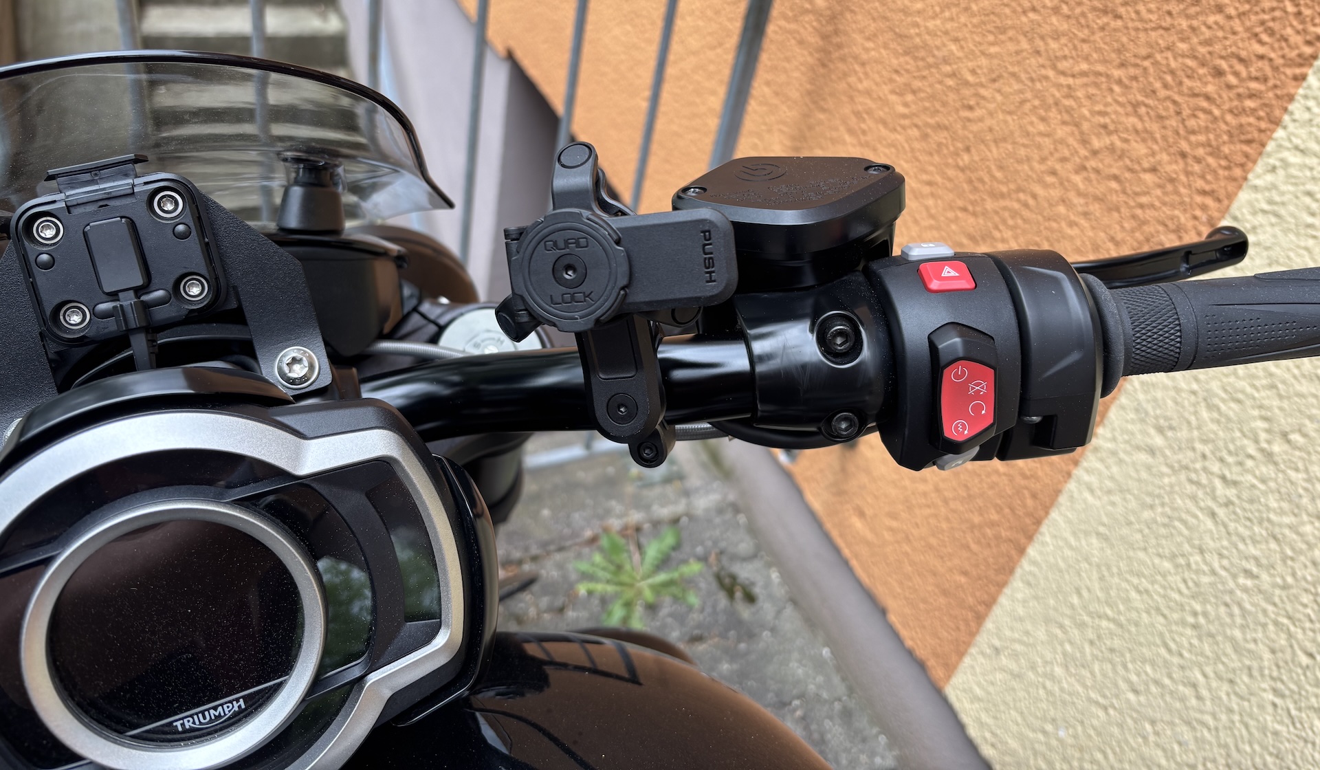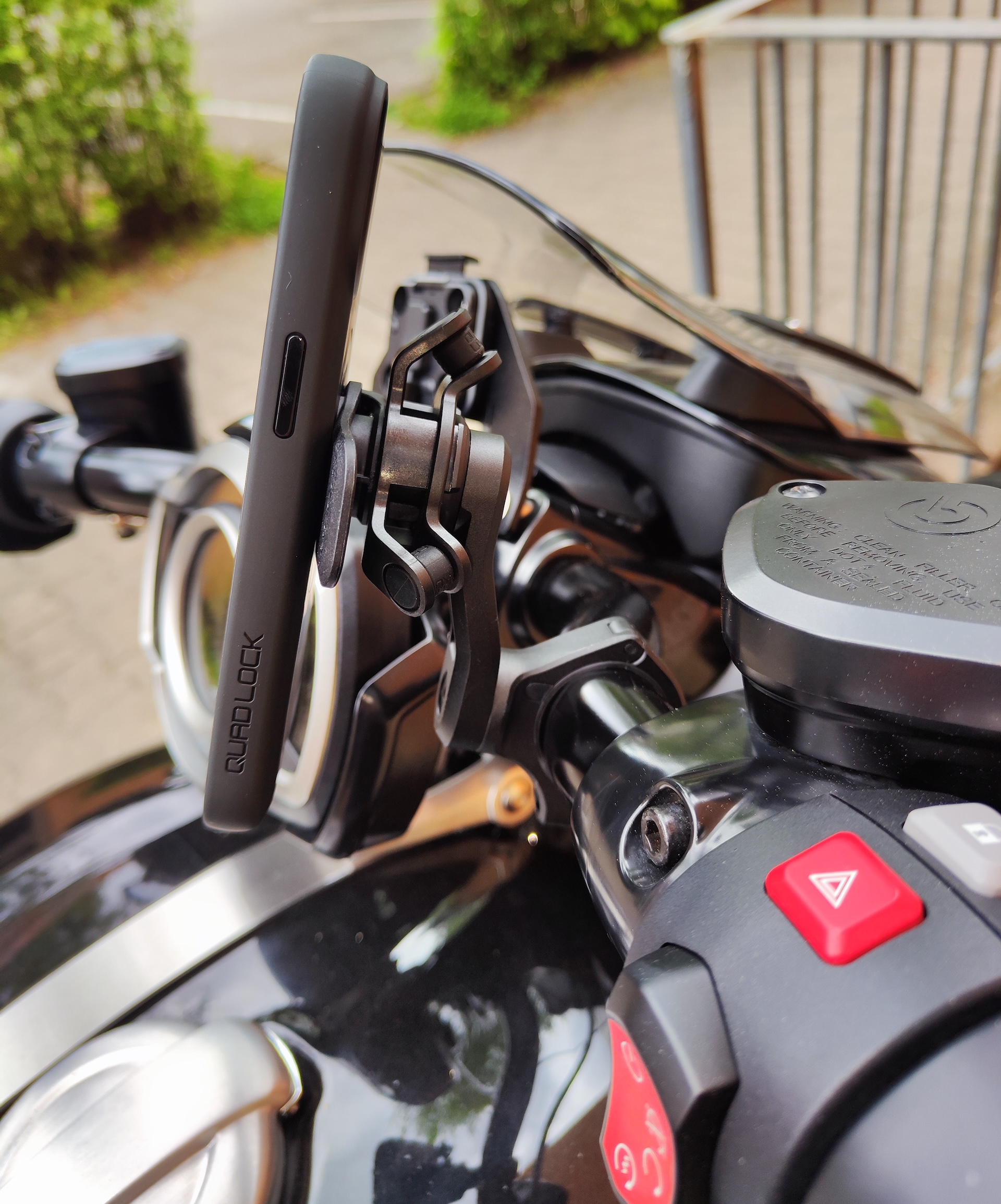 I’ve already sold my Triumph Rocket 3 Storm R and moved on to a new bike, but I still wanted to show how the Quad Lock phone mount sits on this machine. From experience, it can be tricky to find real-world pictures of how certain products fit specific motorcycles, so I like to share that insight whenever I can. Installing the Quad Lock Handlebar Mount Pro with vibration dampener is straightforward on any bike with standard handlebars, and it looks sharp on the Rocket 3. The phone remains impressively stable, making this a mount I’d confidently recommend to any rider.