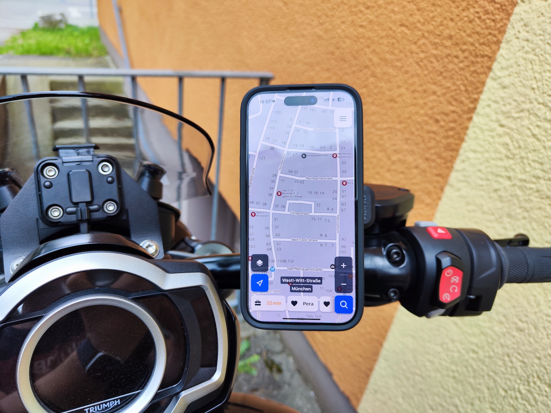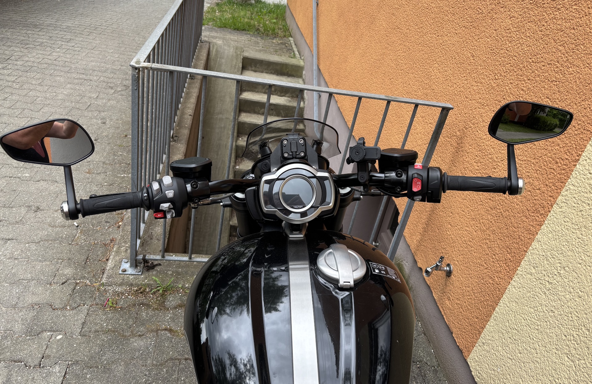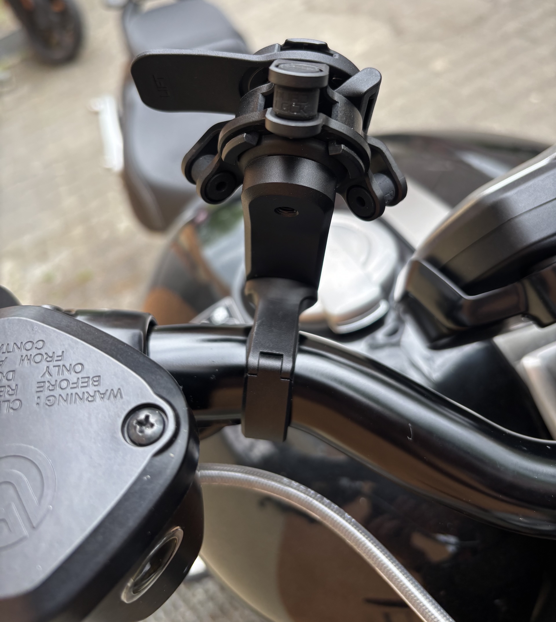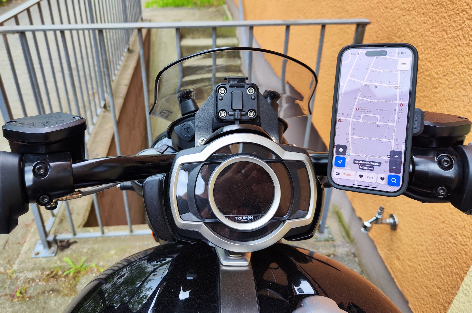I’ve already sold my Triumph Rocket 3 Storm R and moved on to a new bike, but I still wanted to show how the Quad Lock phone mount sits on this machine. From experience, it can be tricky to find real-world pictures of how certain products fit specific motorcycles, so I like to share that insight whenever I can. Installing the Quad Lock Handlebar Mount Pro with vibration dampener is straightforward on any bike with standard handlebars, and it looks sharp on the Rocket 3. The phone remains impressively stable, making this a mount I’d confidently recommend to any rider.